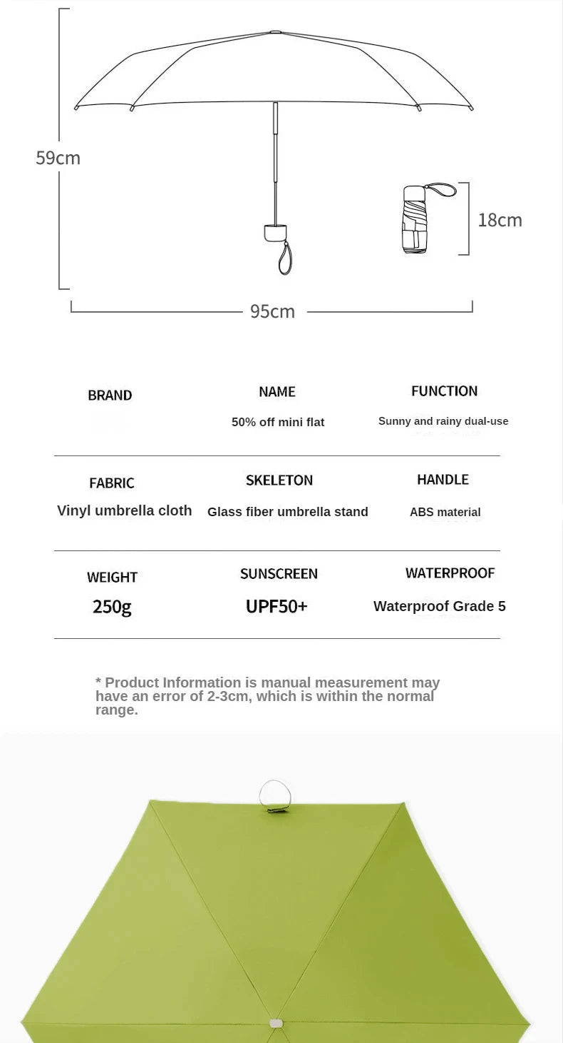 • Durable Construction: Crafted from high-quality plastic and black glue, the 1Pc 55% Off Mini Sun Umbrella Pocket Rain Umbrella is built to last.
