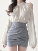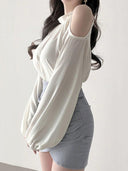 Off-the-Shoulder Lace-up Chiffon Shirt Trendy Fall Style