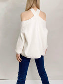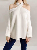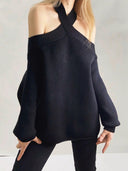 The pullover style of the Cross Collar Lantern Sweater ensures easy wear and convenience, allowing you to transition seamlessly from day to night.
