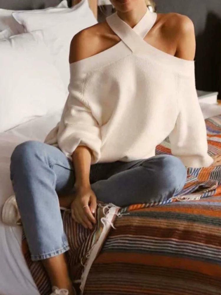Cross Collar Lantern Sweater: Chic Streetwear Classic Style