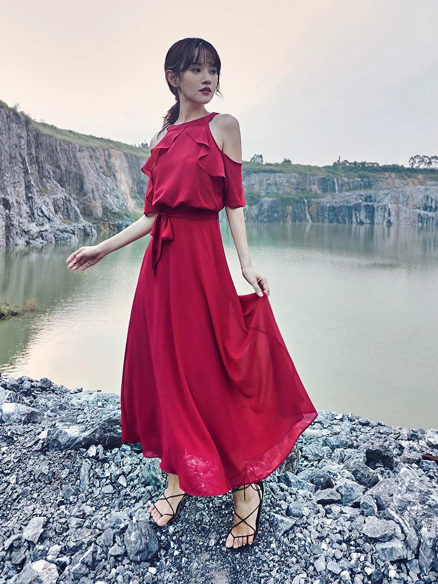 Nara Red Bohemian Chiffon Dress Off Shoulder Summer Style
