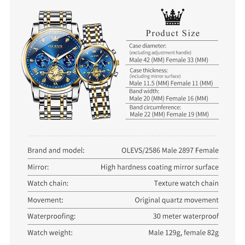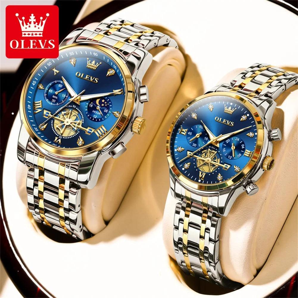 OLEVS Moon Phase Waterproof Couple Watches Stylish Timepieces