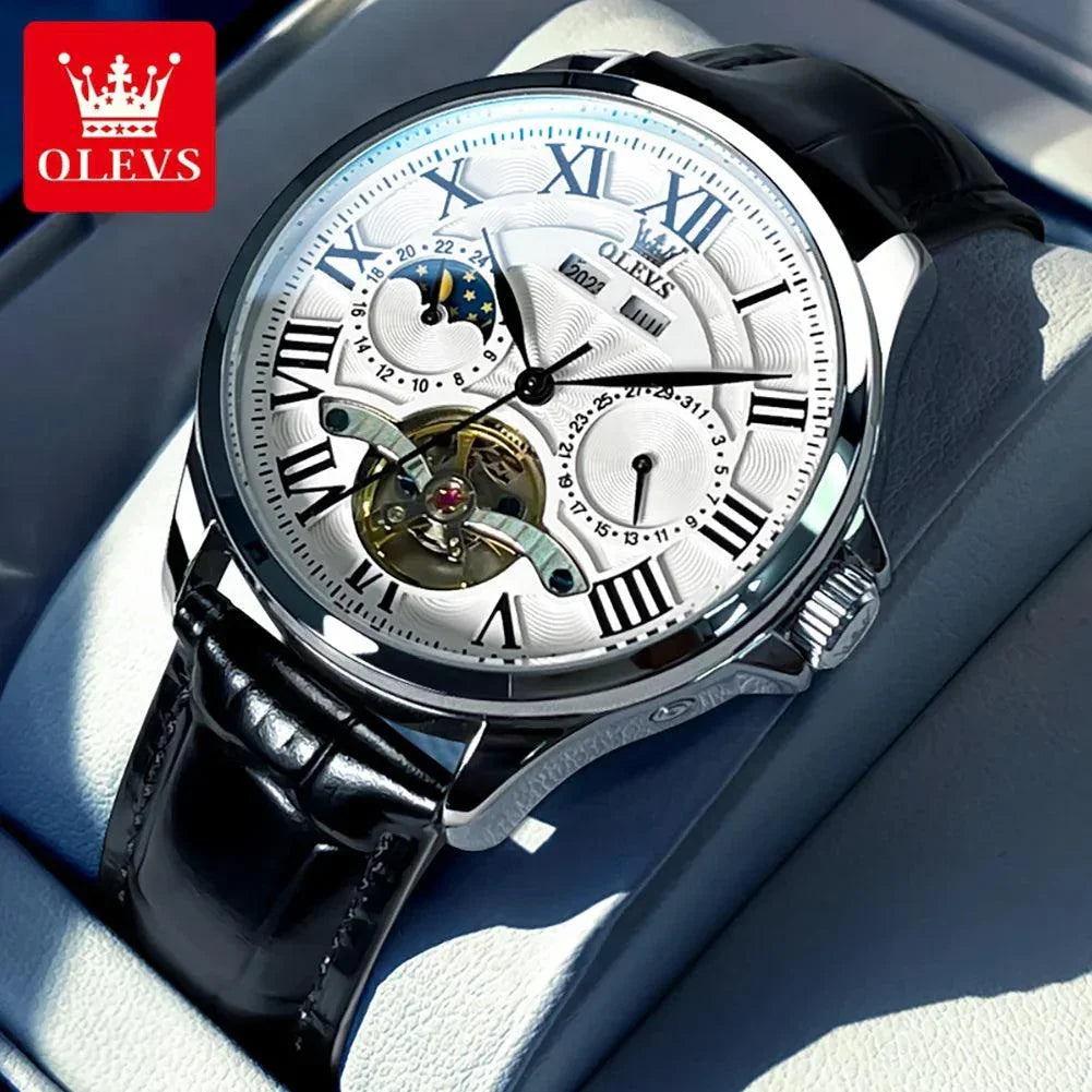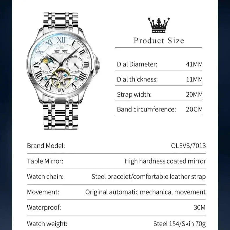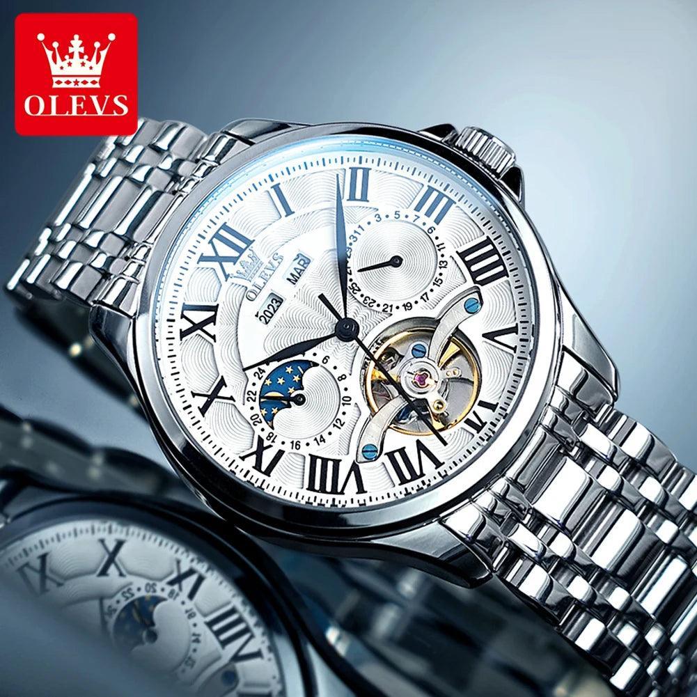 Introducing the OLEVS Moon Phase Luxury Automatic Watch Roman Dial Steel, where elegance meets functionality. This luxurious timepiece is designed for those who appreciate sophisticated style and innovative technology.