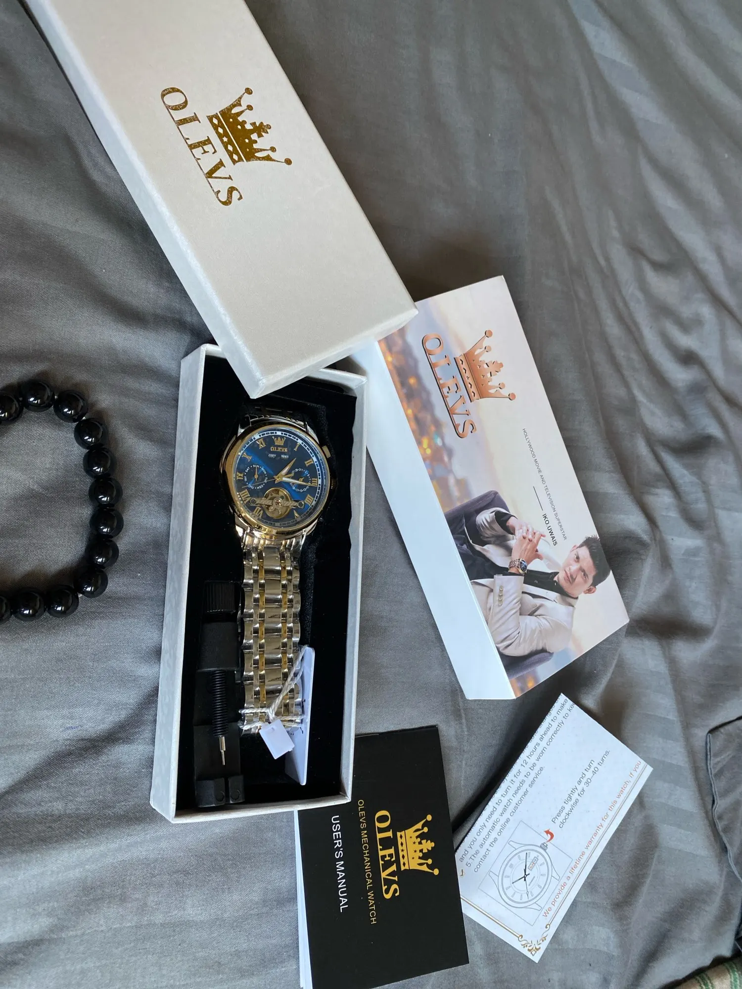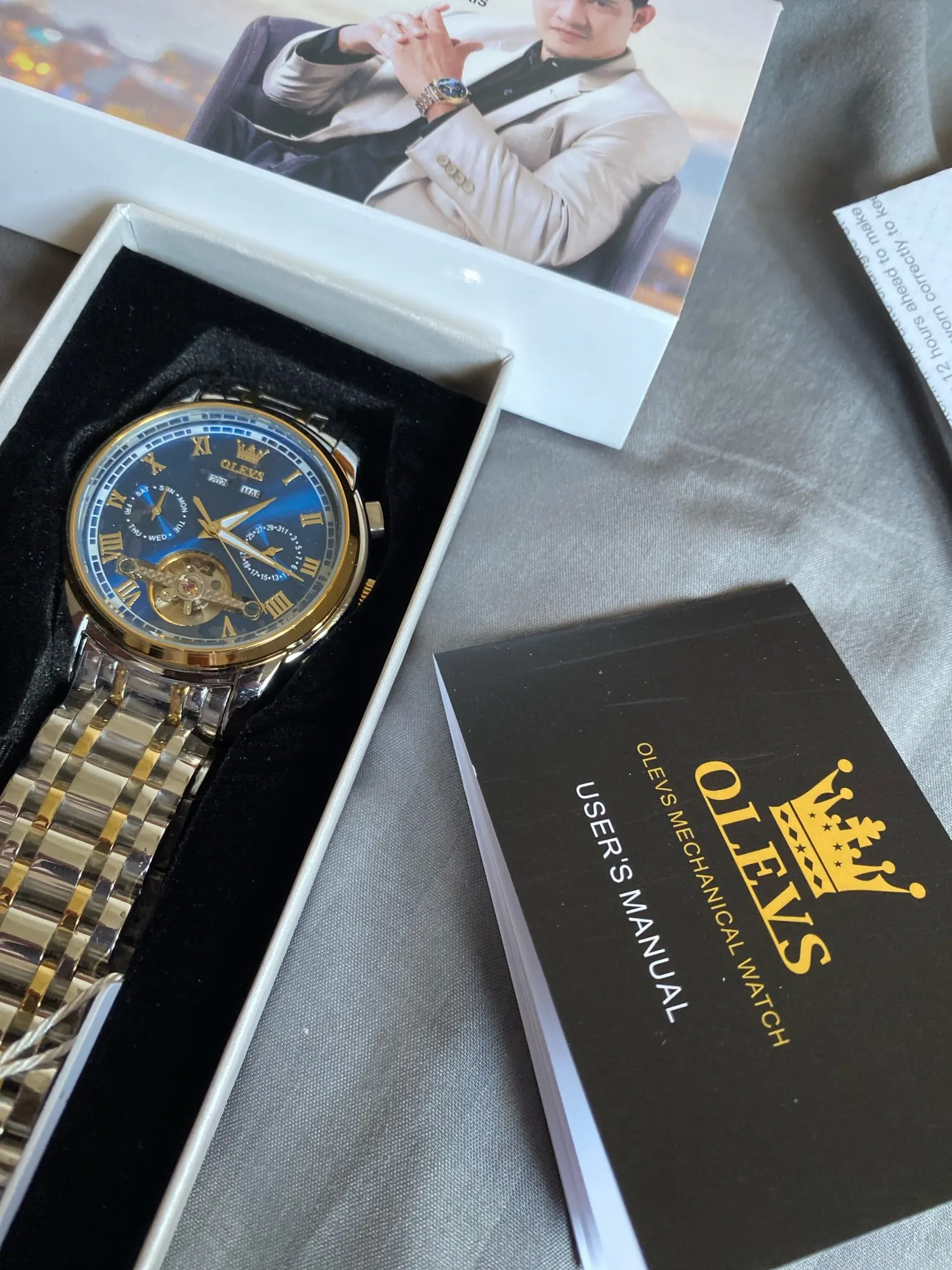Explore the OLEVS Men's Business Stainless Steel Automatic Watch with Skeleton Calendar and its unique features. Don't miss the opportunity to own this stunning timepiece. Order now!