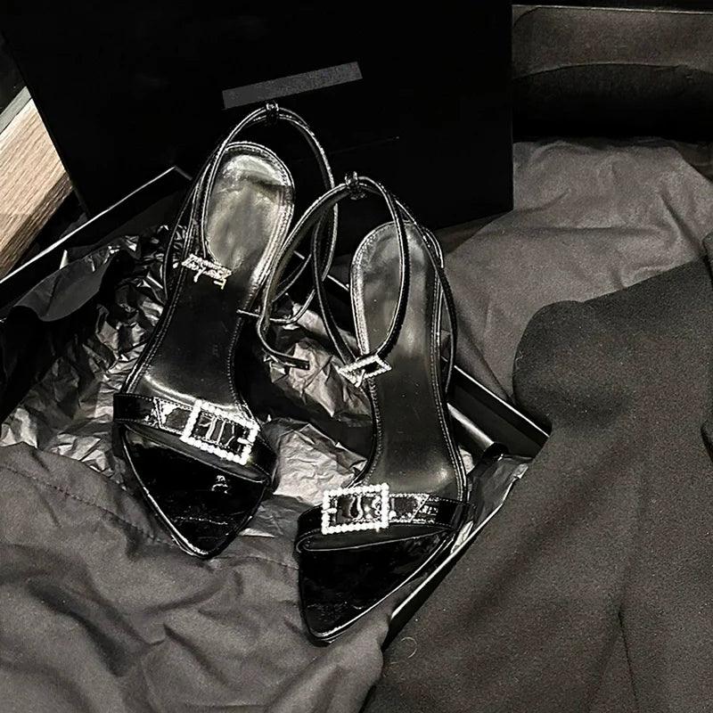 Elevate your summer fashion with our gorgeous Glam Diamond Buckle High Heels, the perfect companion for your summer adventures!