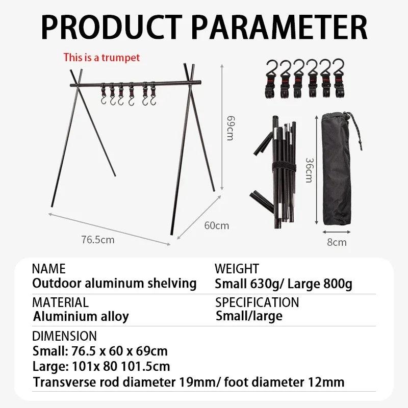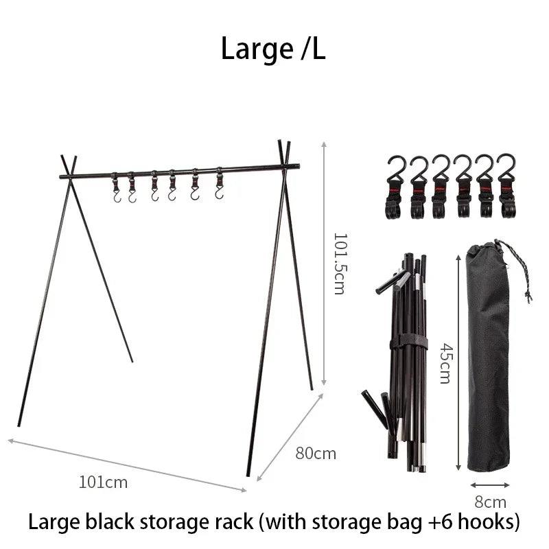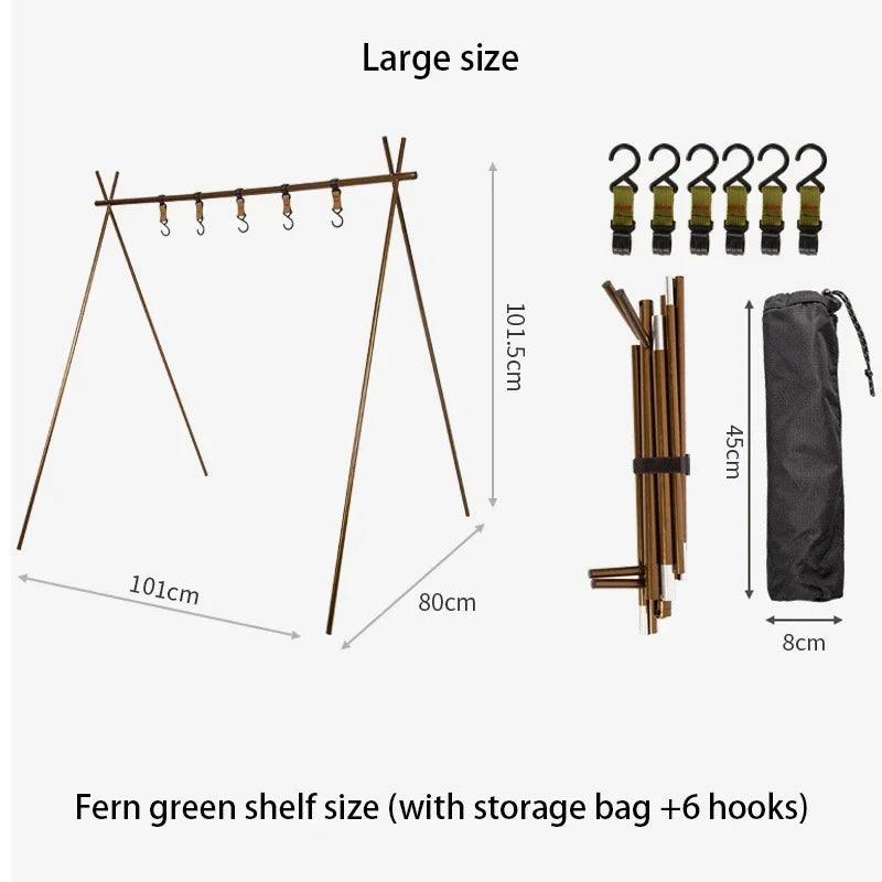 Discover the ultimate outdoor companion with our Portable Folding Tripod Rack for Outdoor Camping Gear. This Camping Gear solution is designed to enhance your outdoor adventures, offering versatile storage for cookware, lanterns, and clothing.