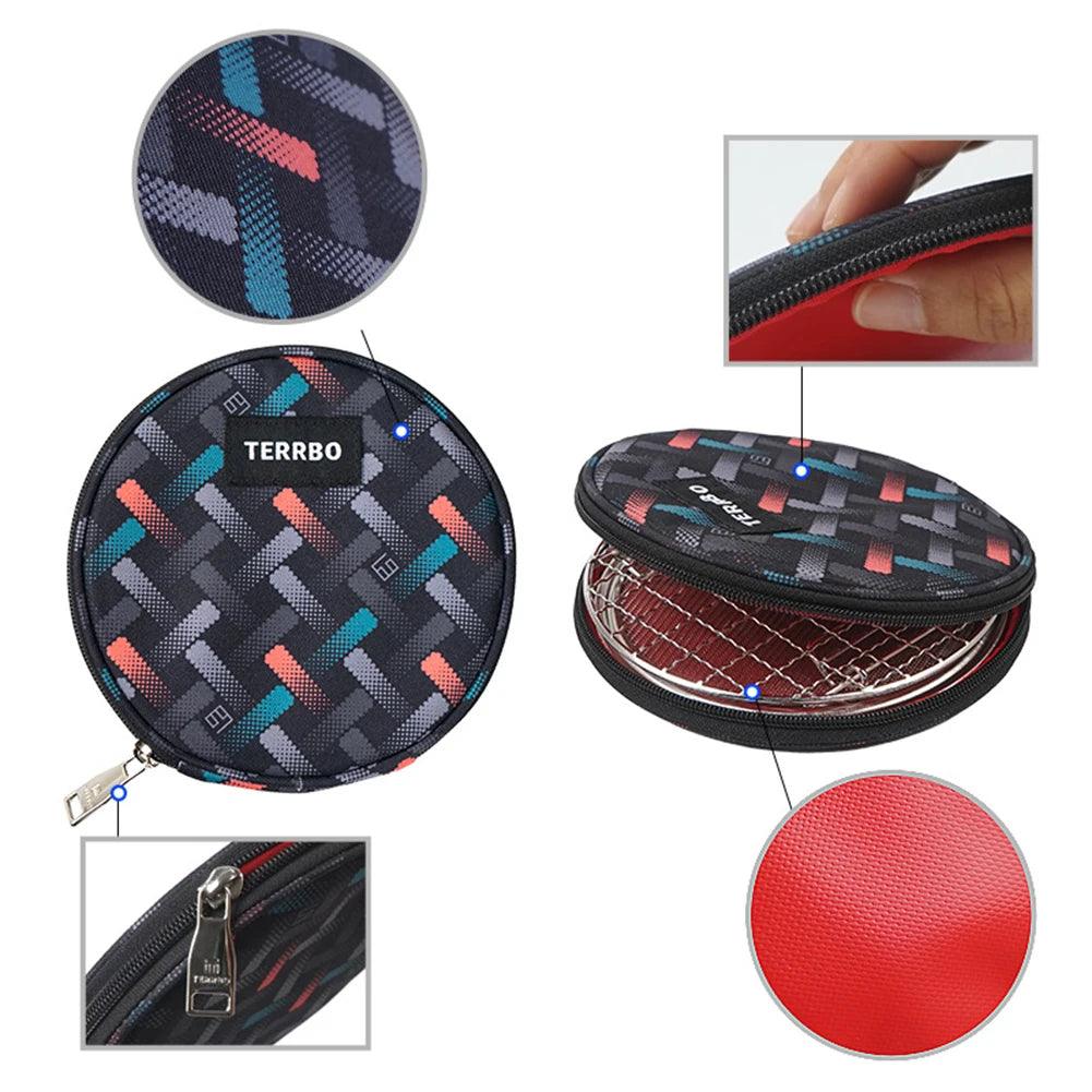• Unfolded dimensions: Φ15cm x 2cm; Handle: 8cm; Storage: 15cm x 1.5cm.