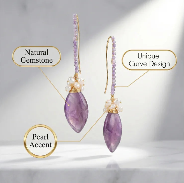 Oval Gemstone Earrings by AMAZETSH blend natural beauty and modern craftsmanship in a stylish drop silhouette. Crafted for women who appreciate genuine gemstones, these earrings showcase an artful pairing of natural red agate and amethyst, brought to life with a polished oval form that catches light from every angle.