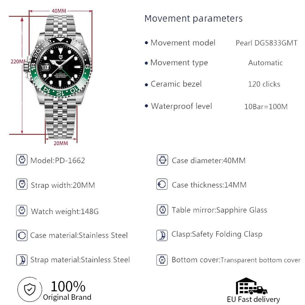 PAGANI DESIGN Luxury GMT Mechanical Wristwatch Adventure Timepiece