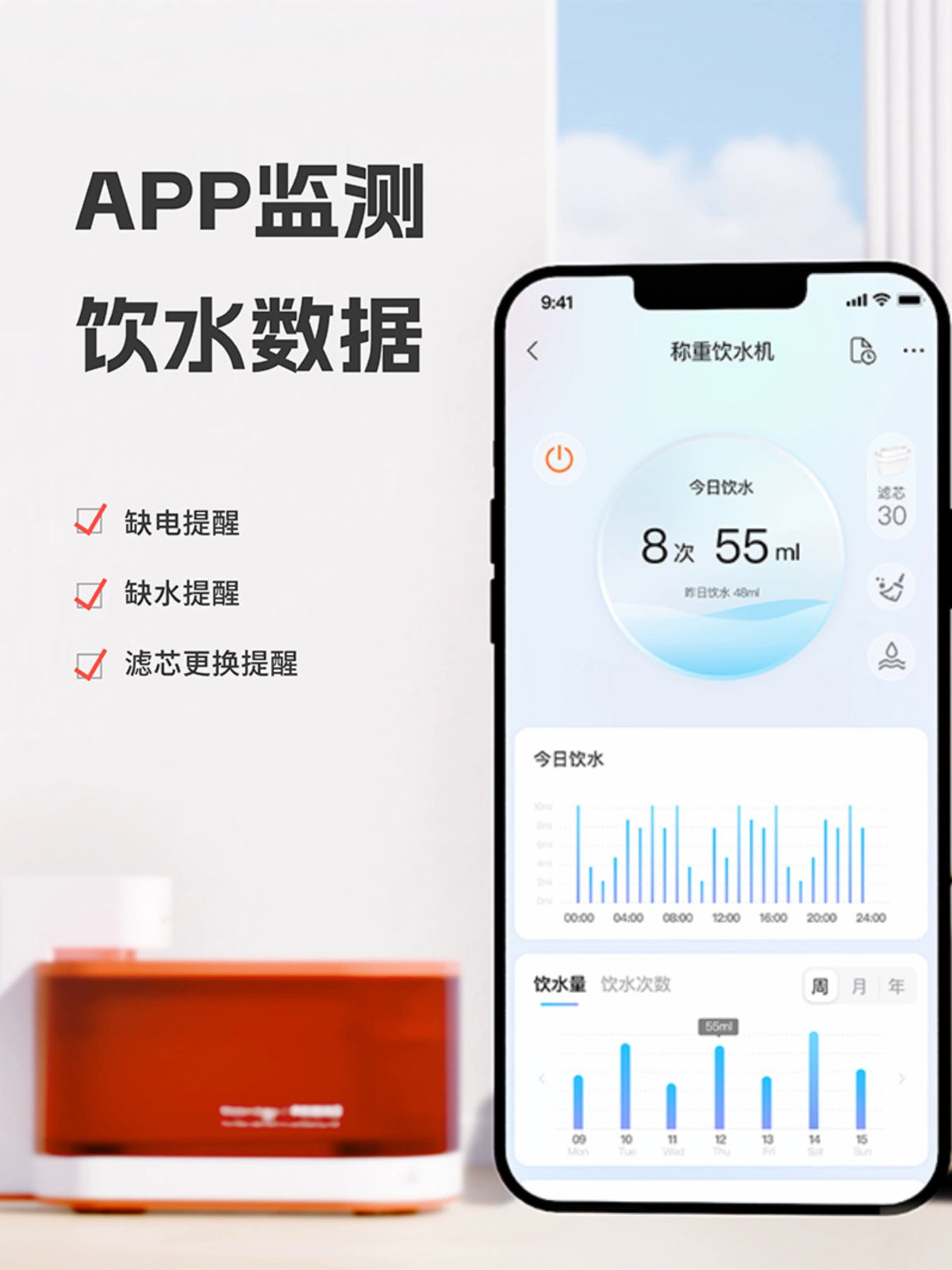 • Intelligent Design: Advanced wireless sensors detect your pet’s drinking habits.