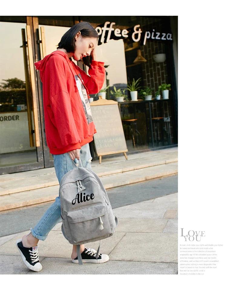 Personalised Corduroy Knapsack Custom Name Casual Backpack