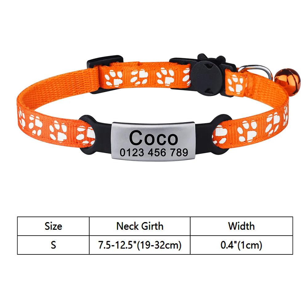 Introducing our Adjustable Personalized Nylon Cat Collar with Bell and Tag, where safety meets style for your feline friend! This collar is designed to ensure a perfect fit while enhancing your cat's visibility and security.