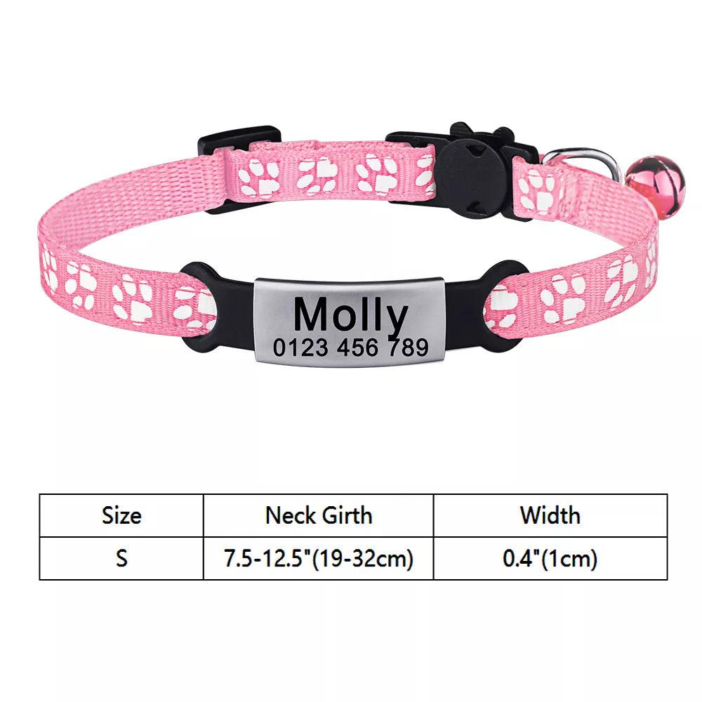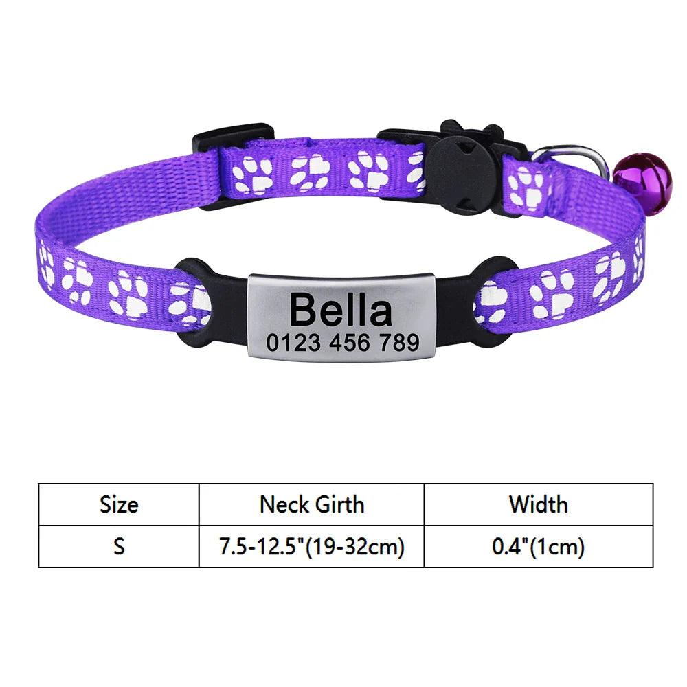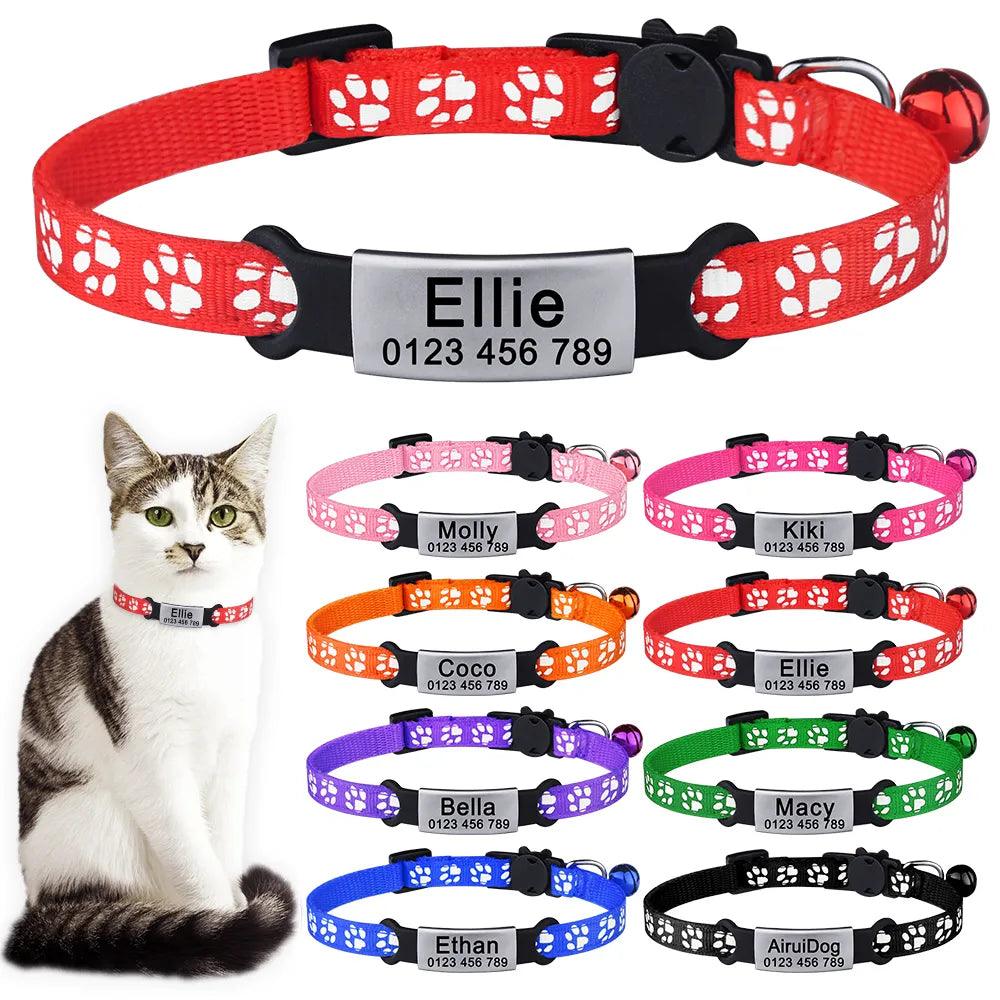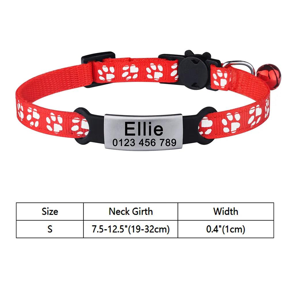 Adjustable Personalized Nylon Cat Collar with Bell and Tag