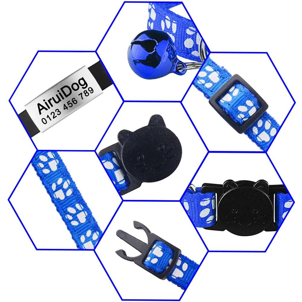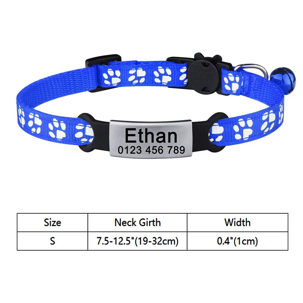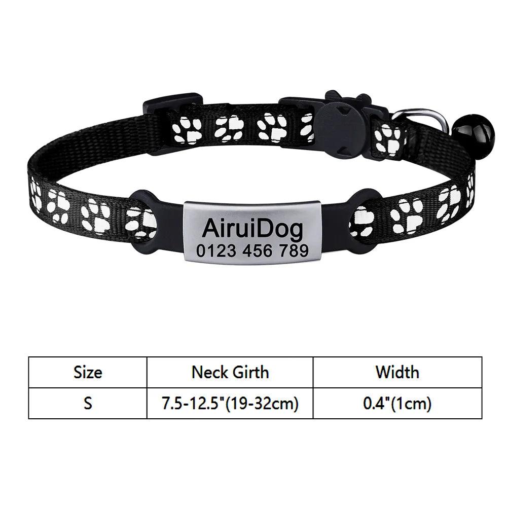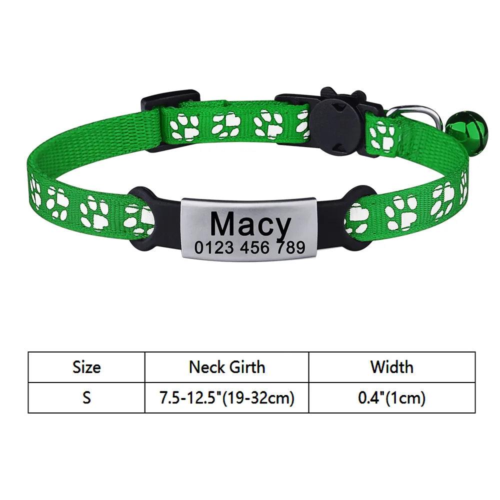 Adjustable Personalized Nylon Cat Collar with Bell and Tag