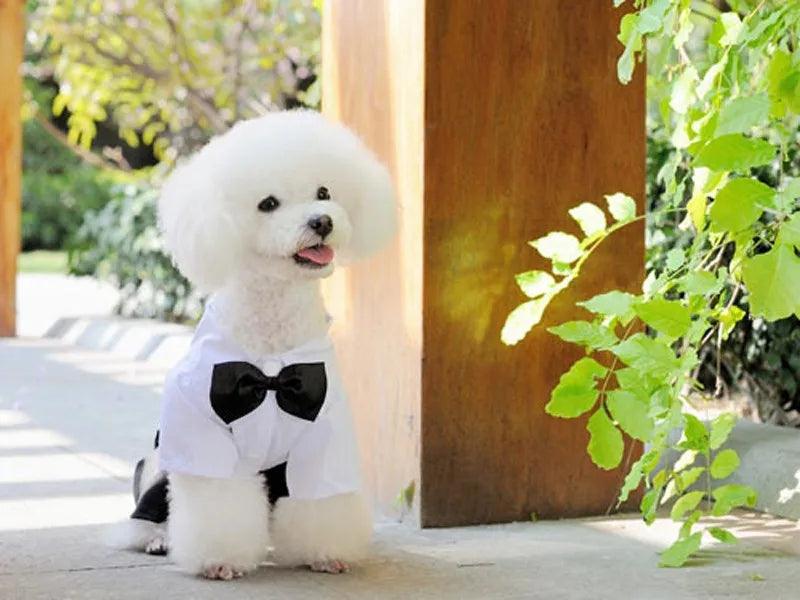 Stylish Pet Clothes: Puppy Dog Tuxedo Suit with Bow Tie Apparel in Sizes S to XXL
