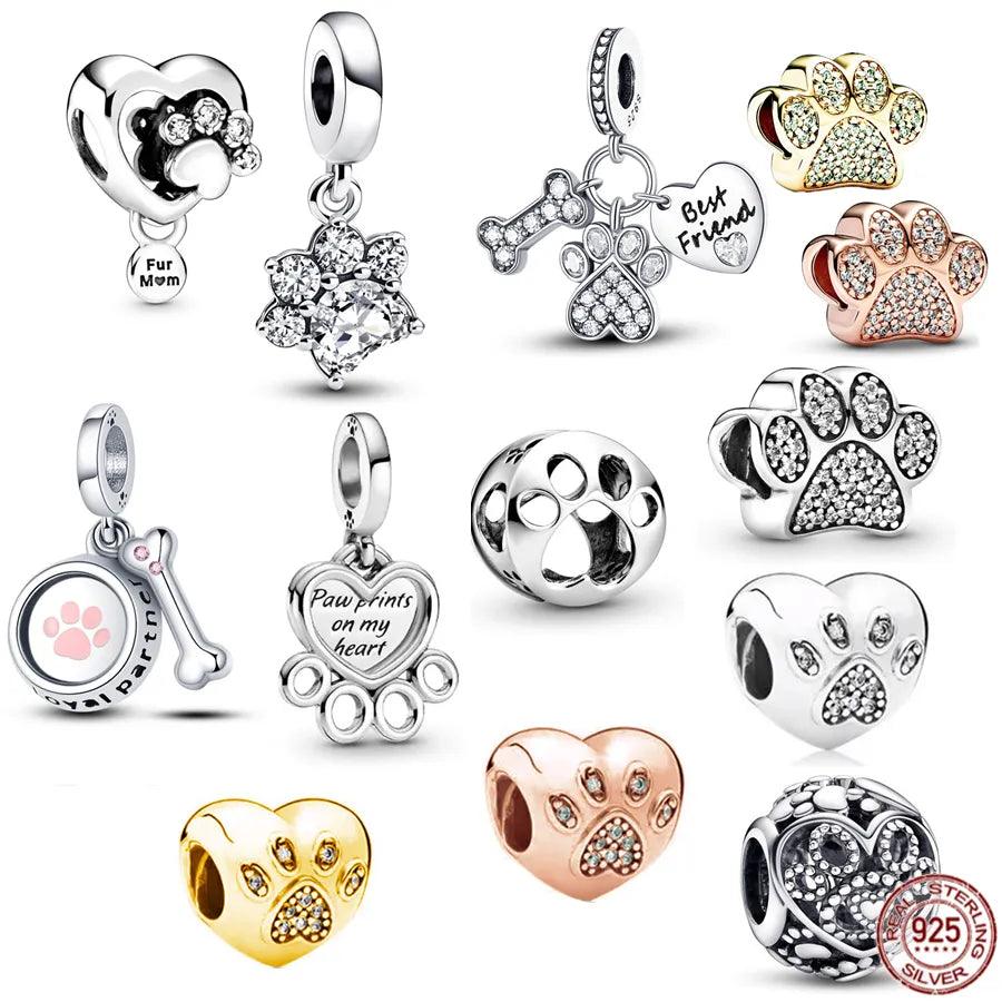 Pet Paw & Bone Charm Sterling Silver Bead for Pandora Jewelry
