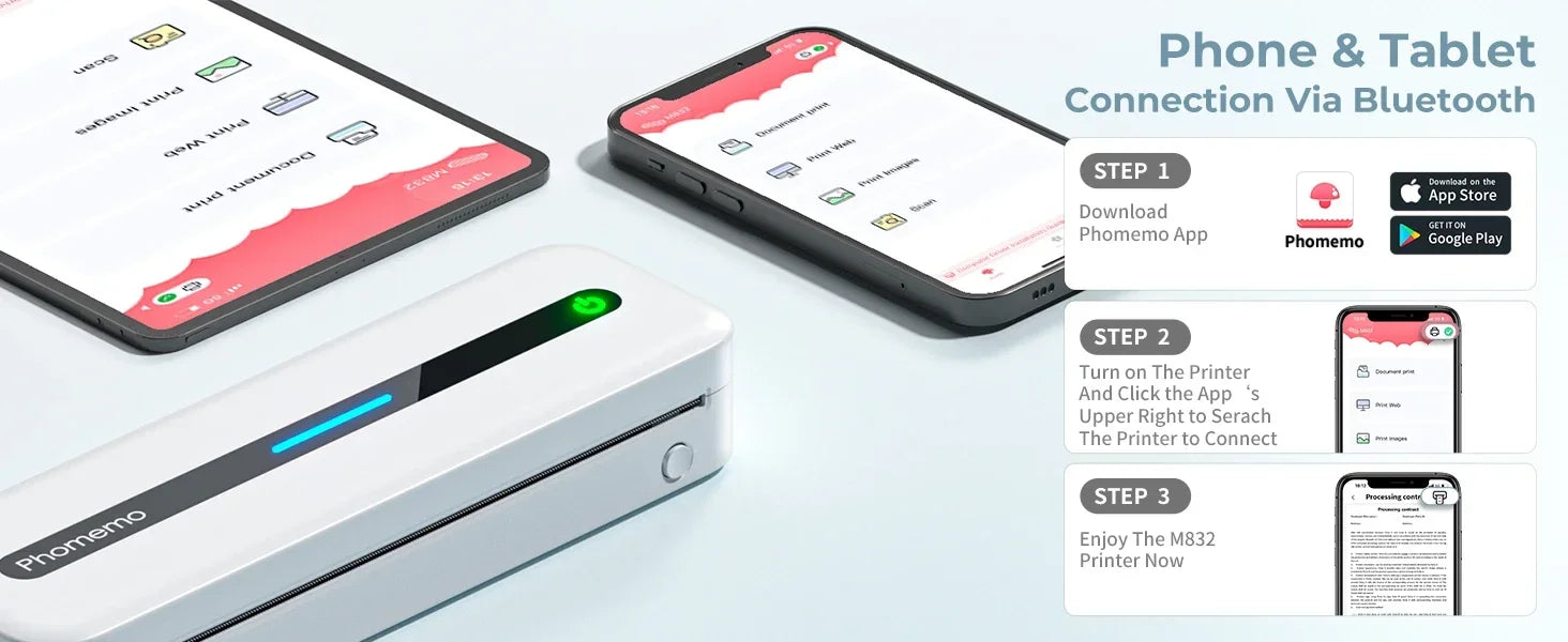 Introducing the Phomemo M832 Thermal Printer A4 Bluetooth Portable Wireless Inkless Printer, your ultimate companion for seamless printing solutions! This innovative printer is designed for both personal and professional use, combining mobility with high-quality output.