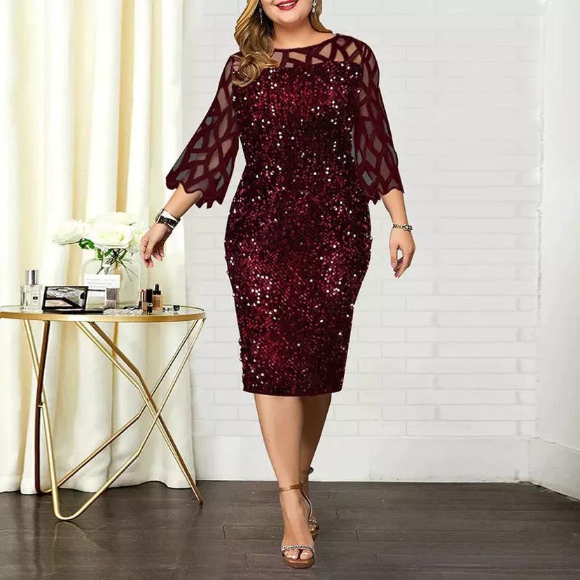 Shimmering Sequin Mesh Plus Size Party Dress Glamour Elegance