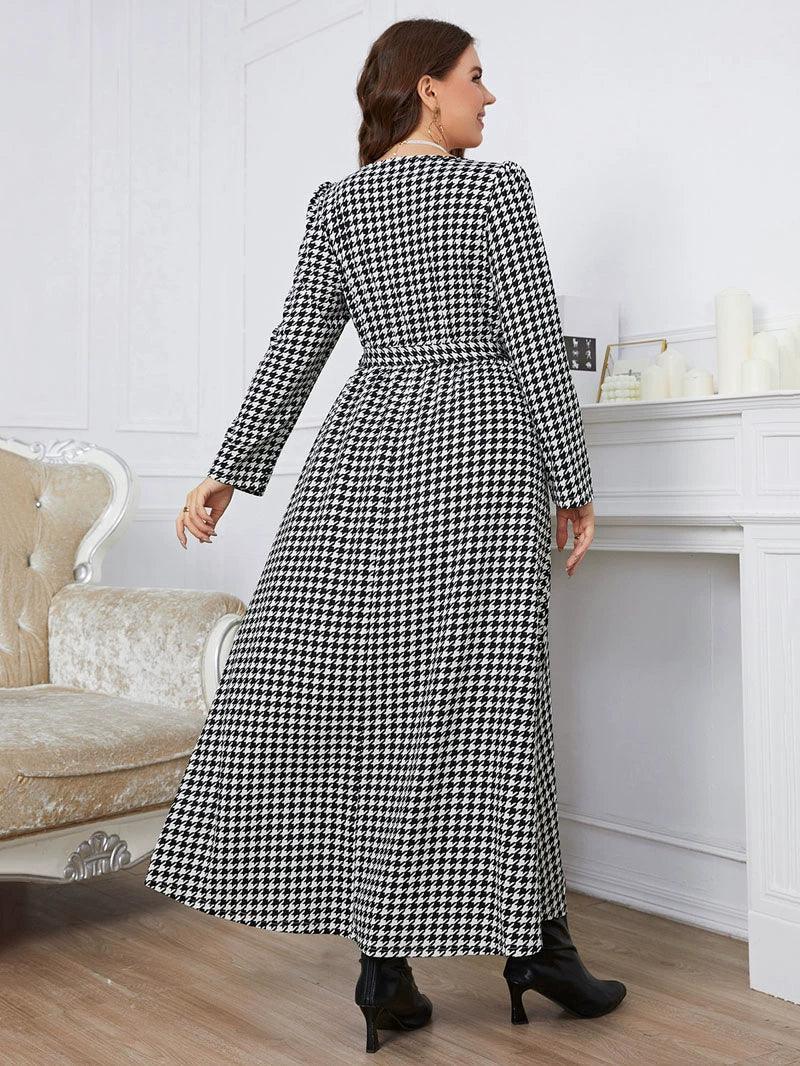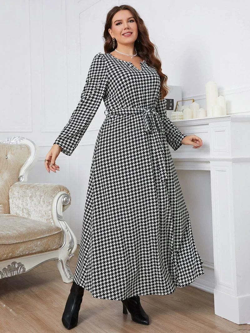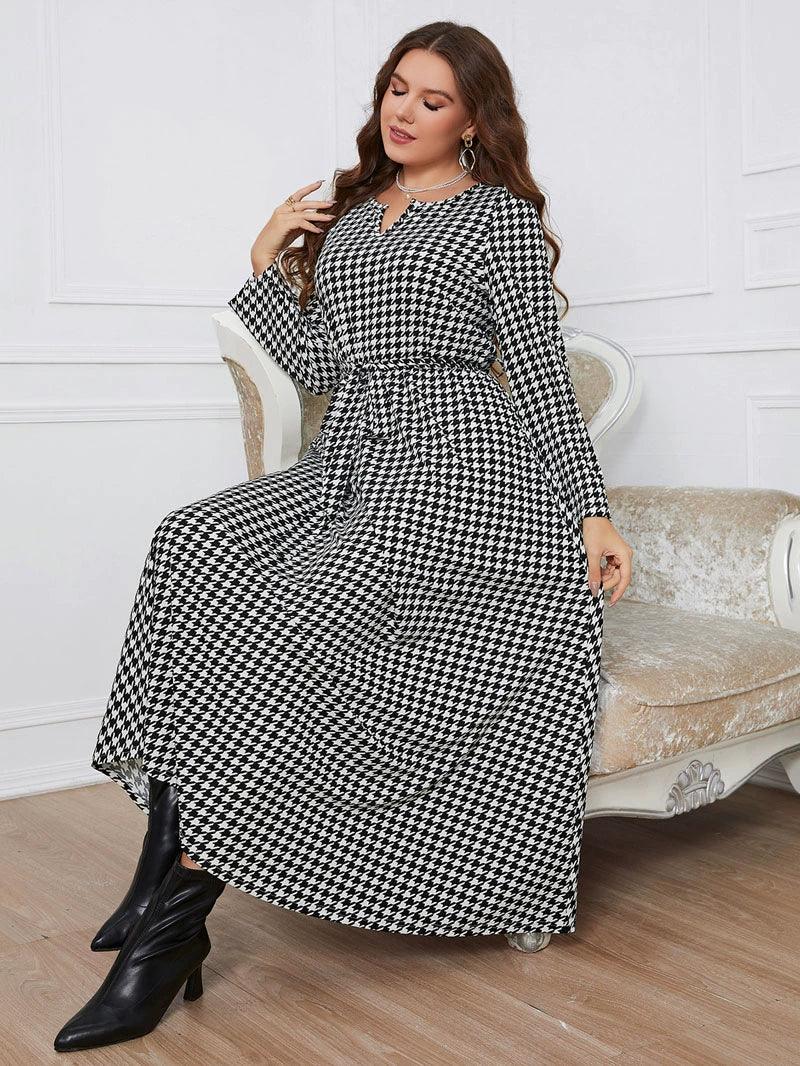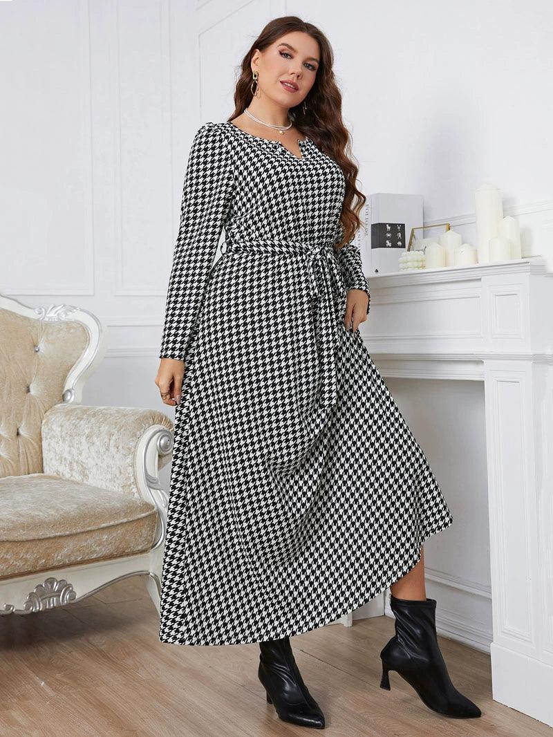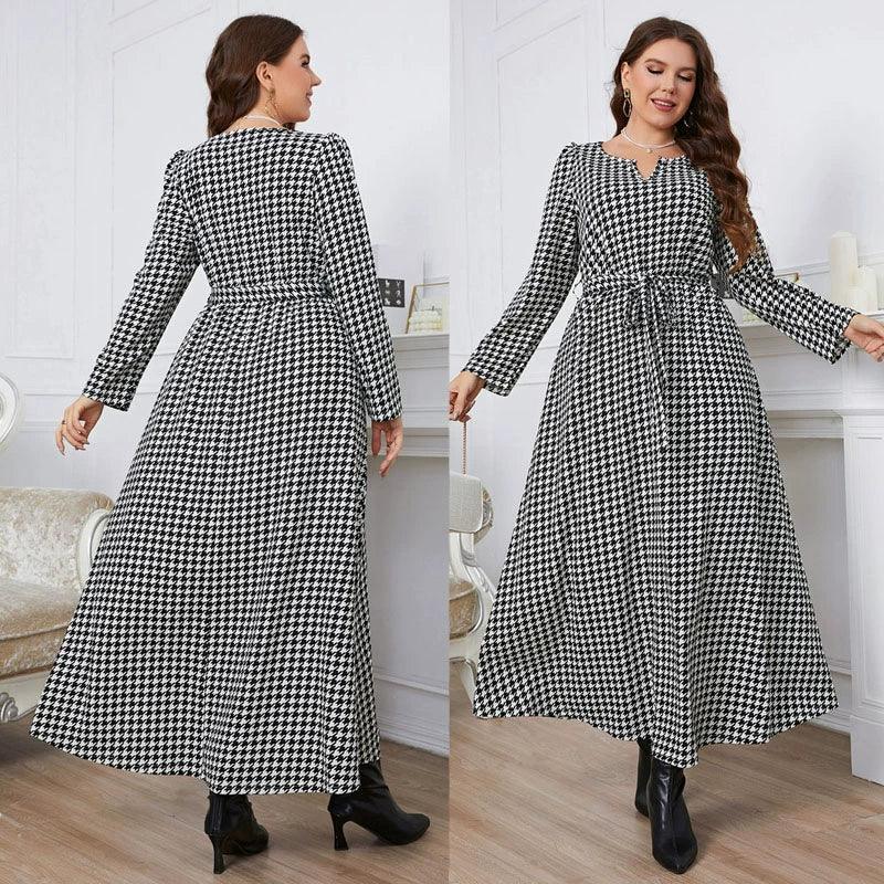 Plaid V Collar Dress: Stylish Plus Size Autumn Fashion
