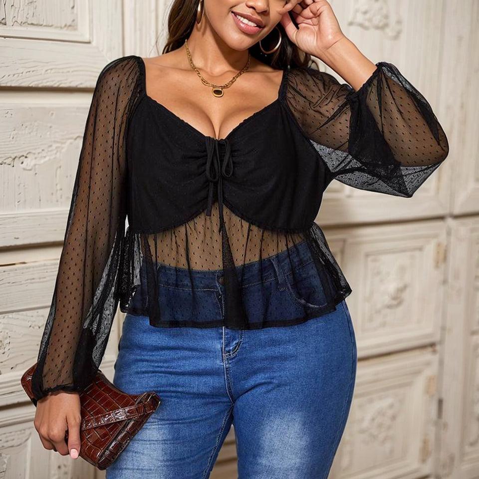 Transform your wardrobe with the Curvy Chic Mesh See-Through Top For Plus Size Women. This stylish top is designed to celebrate your curves while offering a comfortable fit that boosts your confidence. Crafted from premium mesh material, it adds an alluring touch to any outfit, making it an essential choice for both casual outings and elegant events.