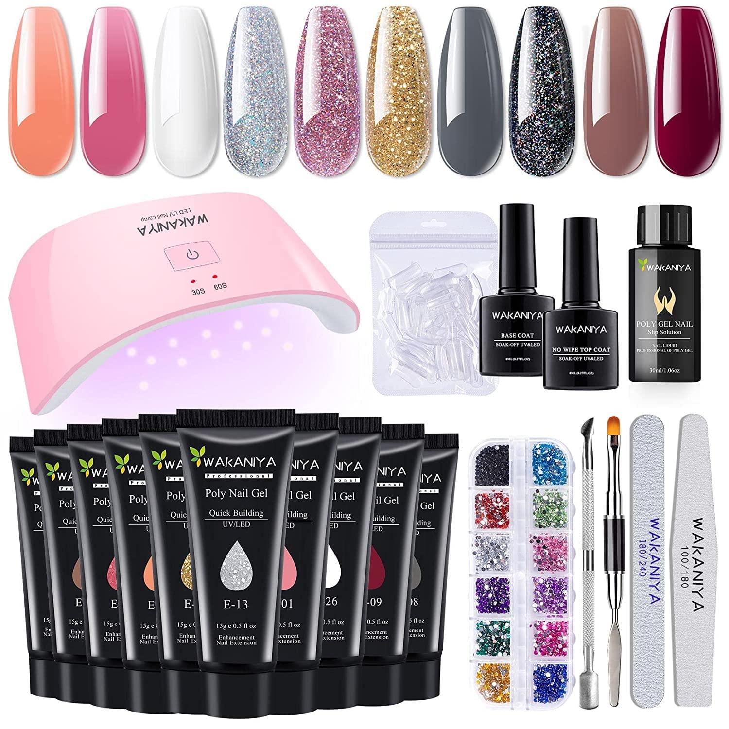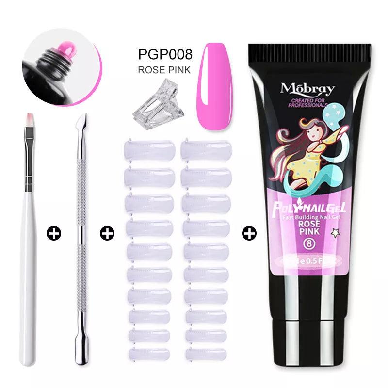 The Diamond Shine Poly Gel Nail Kit includes 10/6 pieces of poly nail gel, providing all the essentials for your nail transformation.