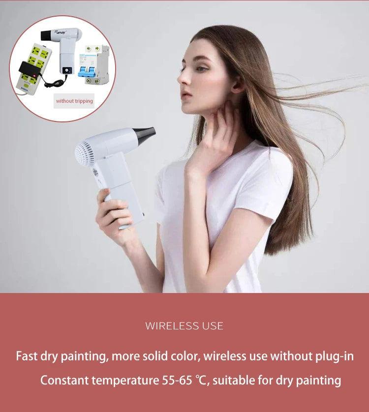 Portable USB Hair Dryer Cordless Blower for Travel delivers salon-grade drying on the go with a 450W motor, hot and cold settings, USB output, and a foldable, battery-powered design. This compact travel buddy doubles as a power bank, with constant temperature tech to protect hair while drying. Perfect for after swimming, gym sessions, or quick blowouts on the road.