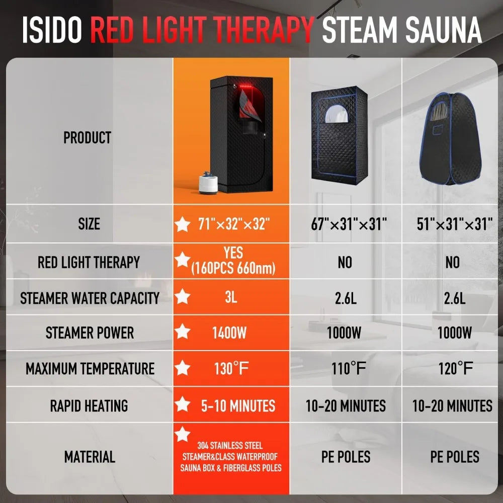 Don't miss the chance to invest in your health! Experience the rejuvenation that comes with regular sauna use. Order your Portable Infrared Steam Sauna with Red Light Therapy Lamp today and embrace a healthier, more energetic lifestyle!
