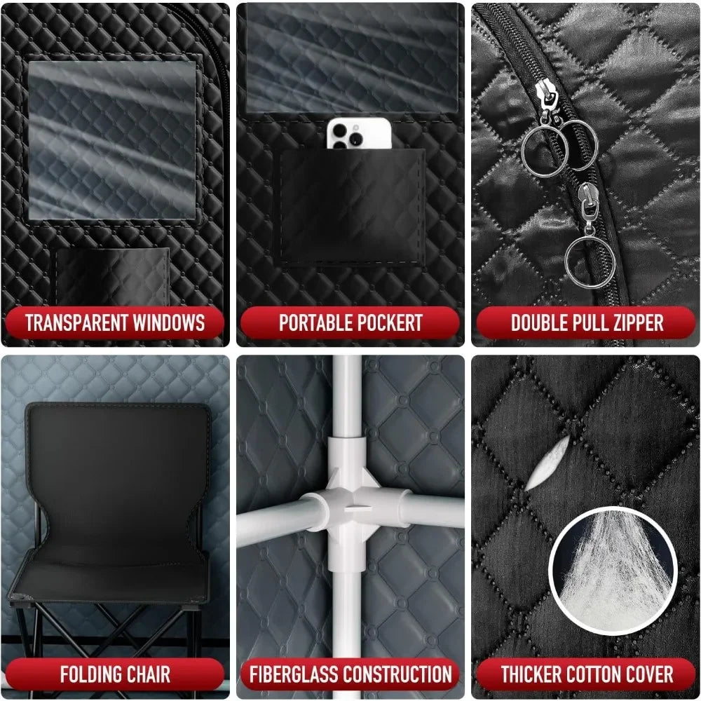 Regular use of the Portable Infrared Steam Sauna with Red Light Therapy Lamp not only promotes relaxation but also significantly enhances your overall well-being, making it an essential addition to your health routine. Constructed with triple-layer waterproofed cotton, it promises durability while keeping operating costs low. It's easy to set up and maintain, making it perfect for home use or on-the-go.