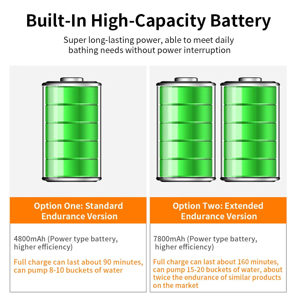 • 4. Long-lasting Battery Life: Enjoy up to 90 minutes of continuous use with the built-in 3600mAh lithium battery, perfect for all your daily bathing needs.