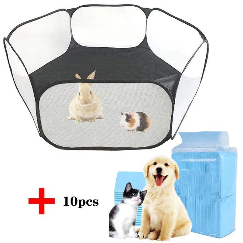 Welcome to the ultimate playtime solution with our Transparent Hedgehog Cage Tent Portable Playpen for Small Pets. This playpen is designed specifically for your small furry friends, offering a safe, comfortable, and engaging environment for pets like hamsters, guinea pigs, and rabbits.