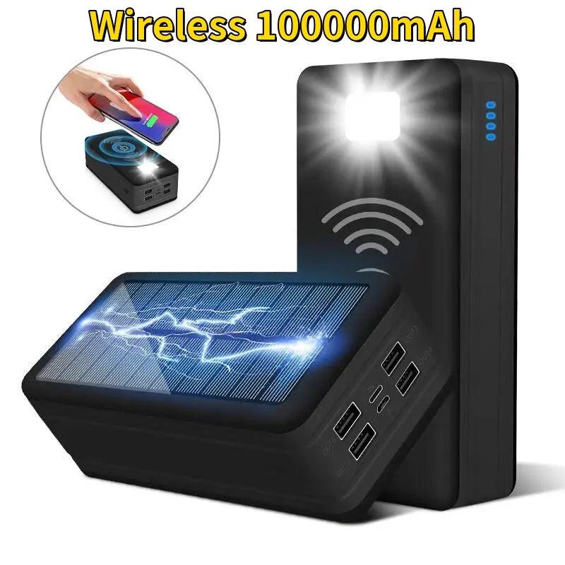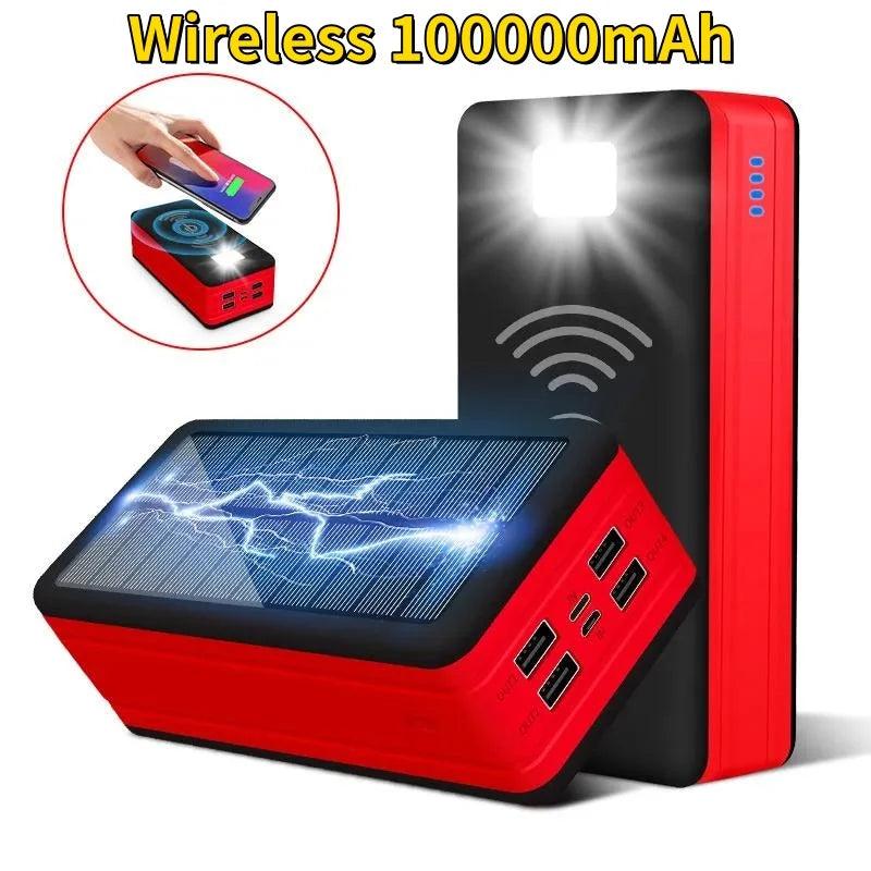 Massive 100000mAh Waterproof Solar Power Bank With Wireless Charging