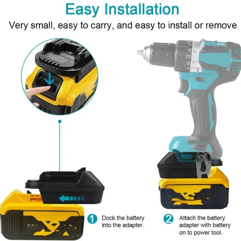 A: Installation is straightforward: align the adapter with the Bosch 18V Li‑ion battery, then lock it into place. The process is fast, tool-free, and compatible with a range of tools from Makita to Worx. Once locked, you can immediately power compatible tools without fiddling with cables or chargers, enhancing your Bosch 18V battery experience.