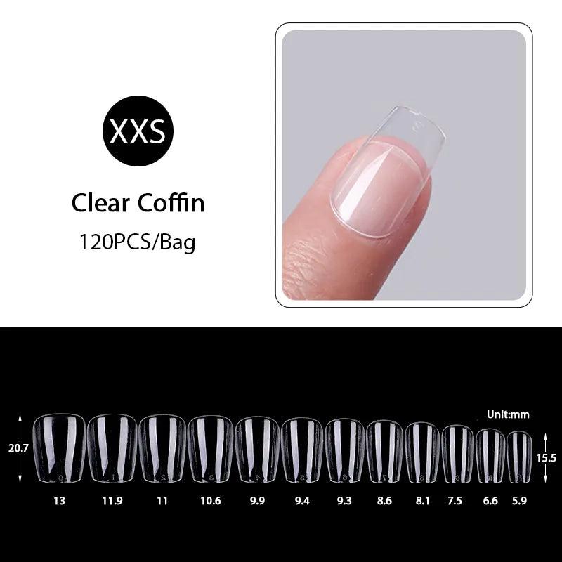 The kit comes with an impressive assortment of 120/48/24 pieces of Soft Gel Coffin Tips, giving you plenty of options to explore and create breathtaking nail designs.