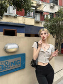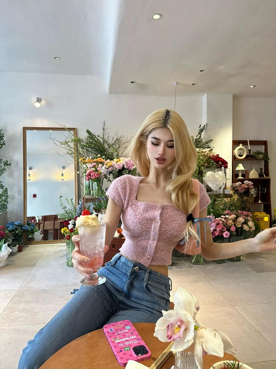 Prettydragon Spring Cardigan Elegant Square Collar Knitwear