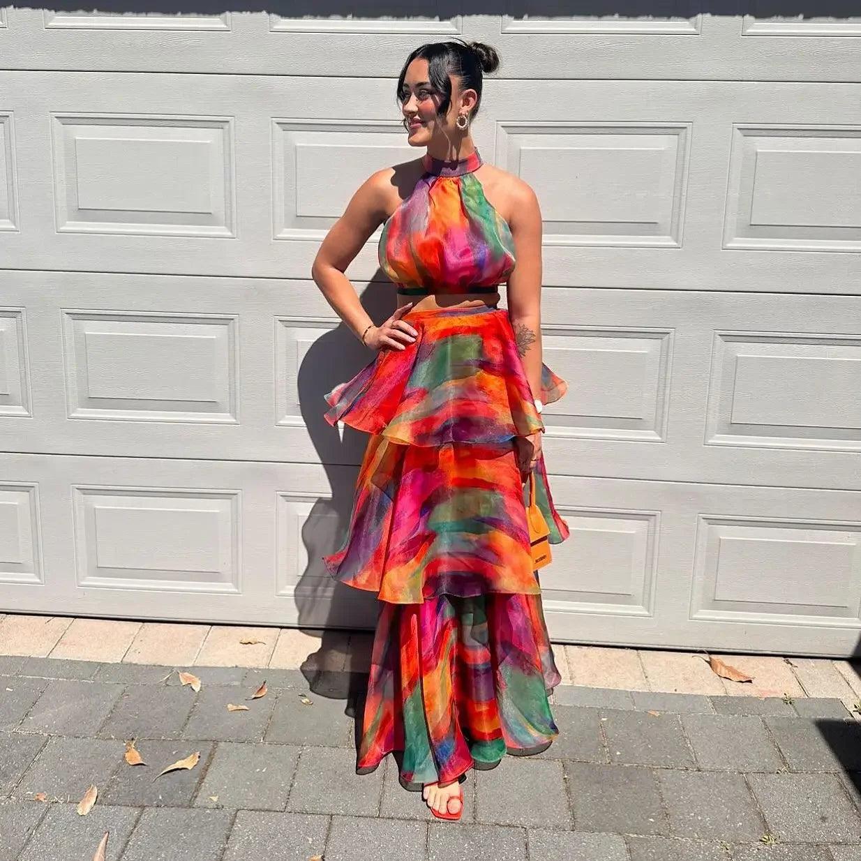 The Bohemian Patchwork Halter Dress showcases ruffled details and a flattering silhouette, making it an essential piece for the spring/summer collection.