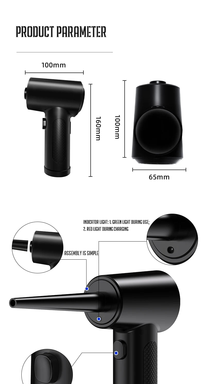 • Powerful Performance: With an impressive 51000 RPM motor, this air duster delivers airflow speeds up to 25m/s, ensuring effective removal of stubborn dirt.