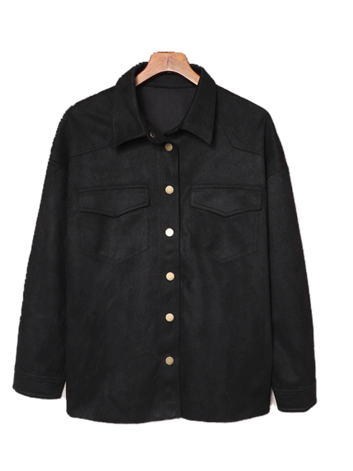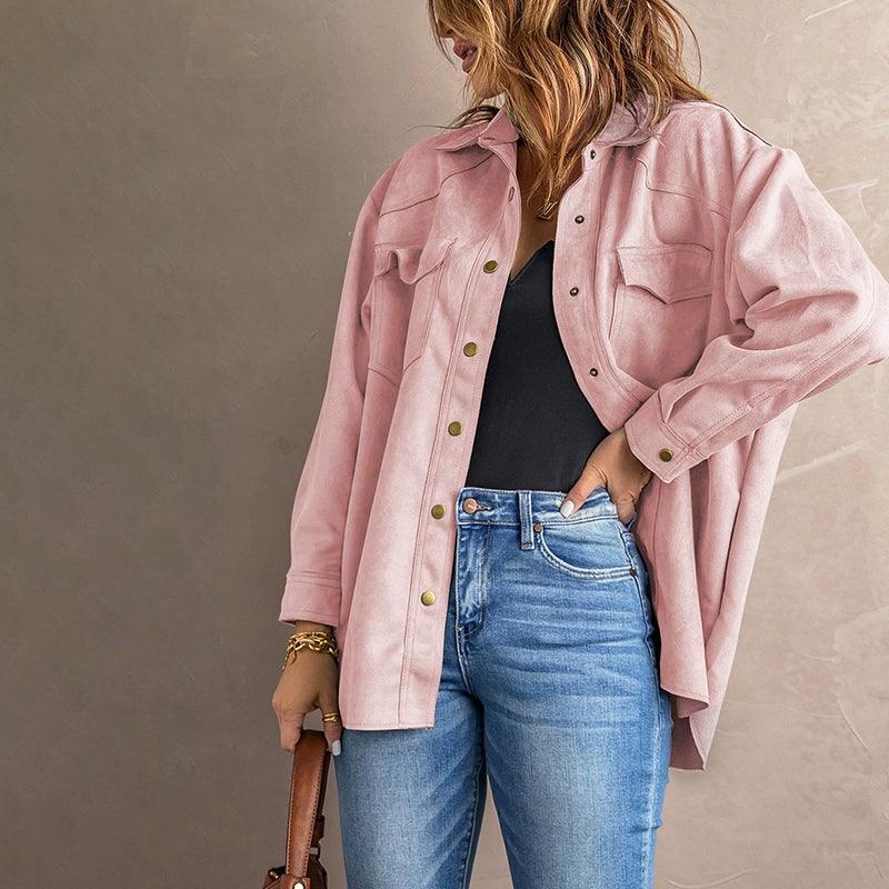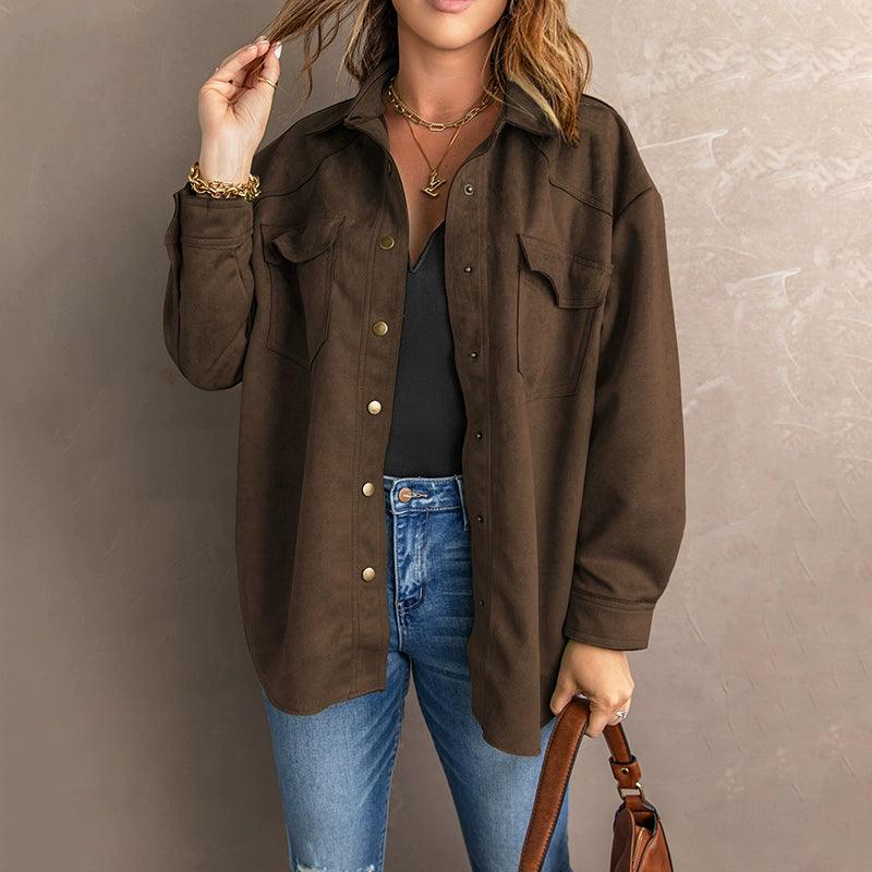 Elevate Your Style with the Pure Color Snap Button Loose Suede Shirt Coat Suede Chic