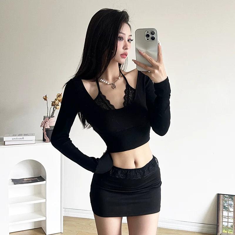 Pure Desire Lace Patchwork Two-Piece Chic Women's Fashion
