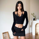 • 3. V-Neck and Long Sleeves: Enhance your chic appeal while staying stylish.