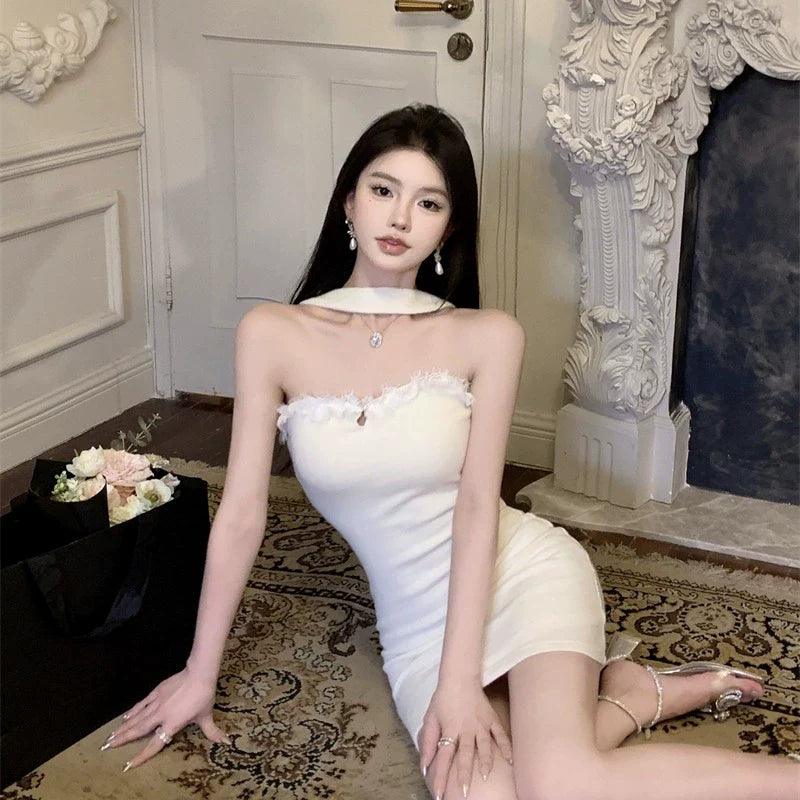 #2048158620653710-Dresses-S([Tea break milk sweet waist-tight skirt]])