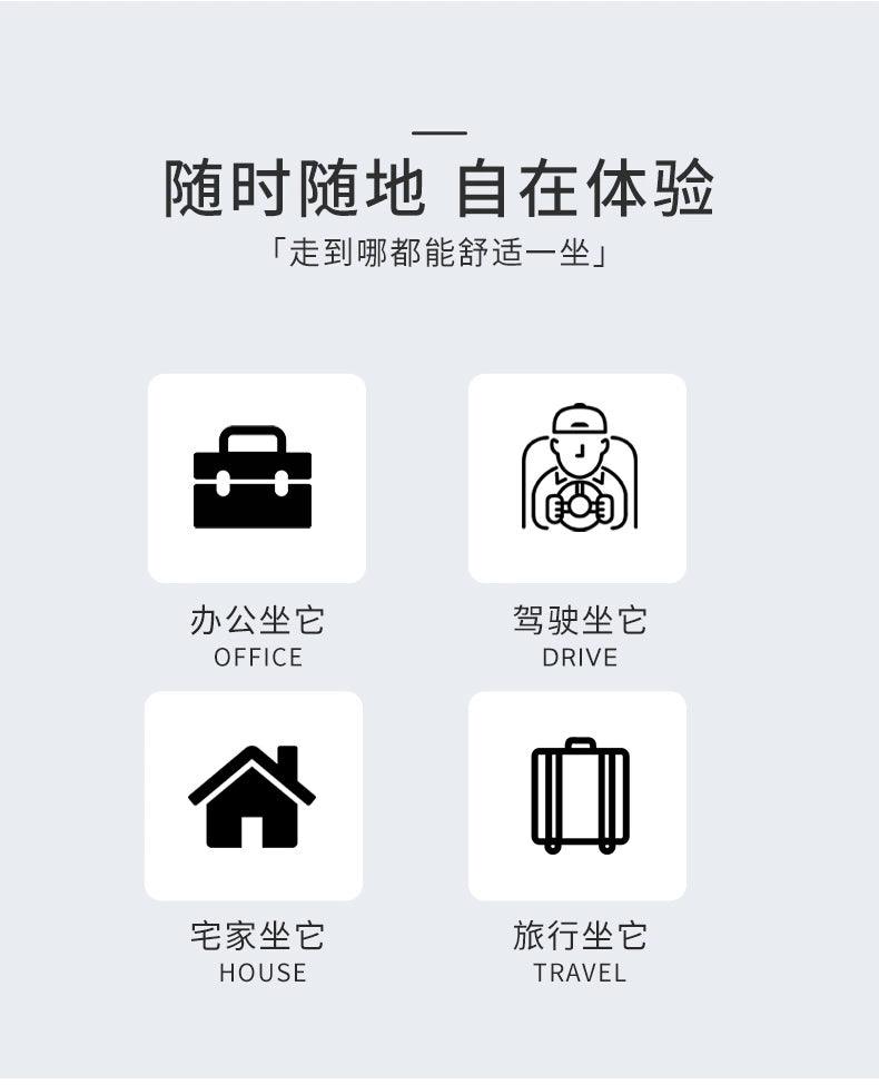 • Car Seat Cushion: Perfect for long drives, providing relief for your back while you travel.