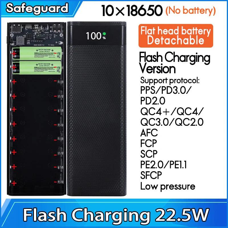 Don't miss out on this essential charging solution. Order now to elevate your charging experience with the Quick Charging Power Bank Case 18650 Battery Box USB Type C 22.5W QC3.0!