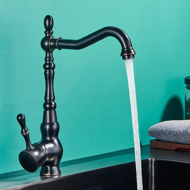 Upgrade your kitchen with the stunning Quyanre Black Bronze Retro Antique Brass Kitchen Faucet. This exemplary single handle mixer tap marries vintage elegance with modern functionality, making it the ideal choice for both classic and contemporary kitchens.