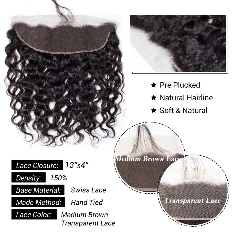 Brazilian Water Wave Lace Frontal Hair Bundle 100% Human Hair