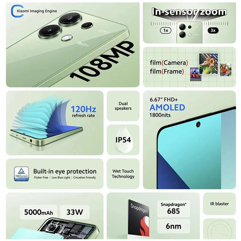 Redmi Note 13 Global Version 128GB 256GB Snapdragon 685 AMOLED 120Hz Camera 108MP Fast Charging 33W NFC