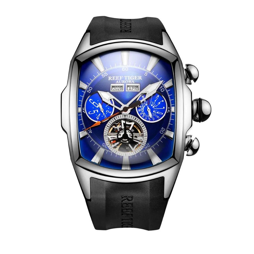 Reef Tiger Tourbillon Stainless Steel Sport Watch Luxury Timepiece