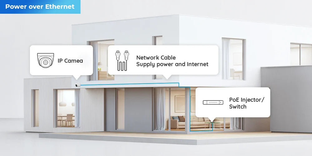 • Easy Installation: Power over Ethernet (PoE) allows for simple setup—connect each camera with one cable for both power and video.