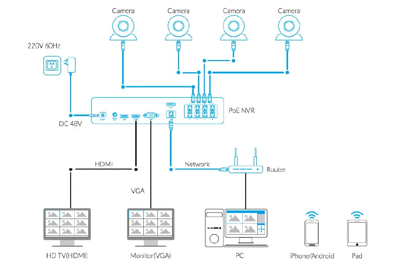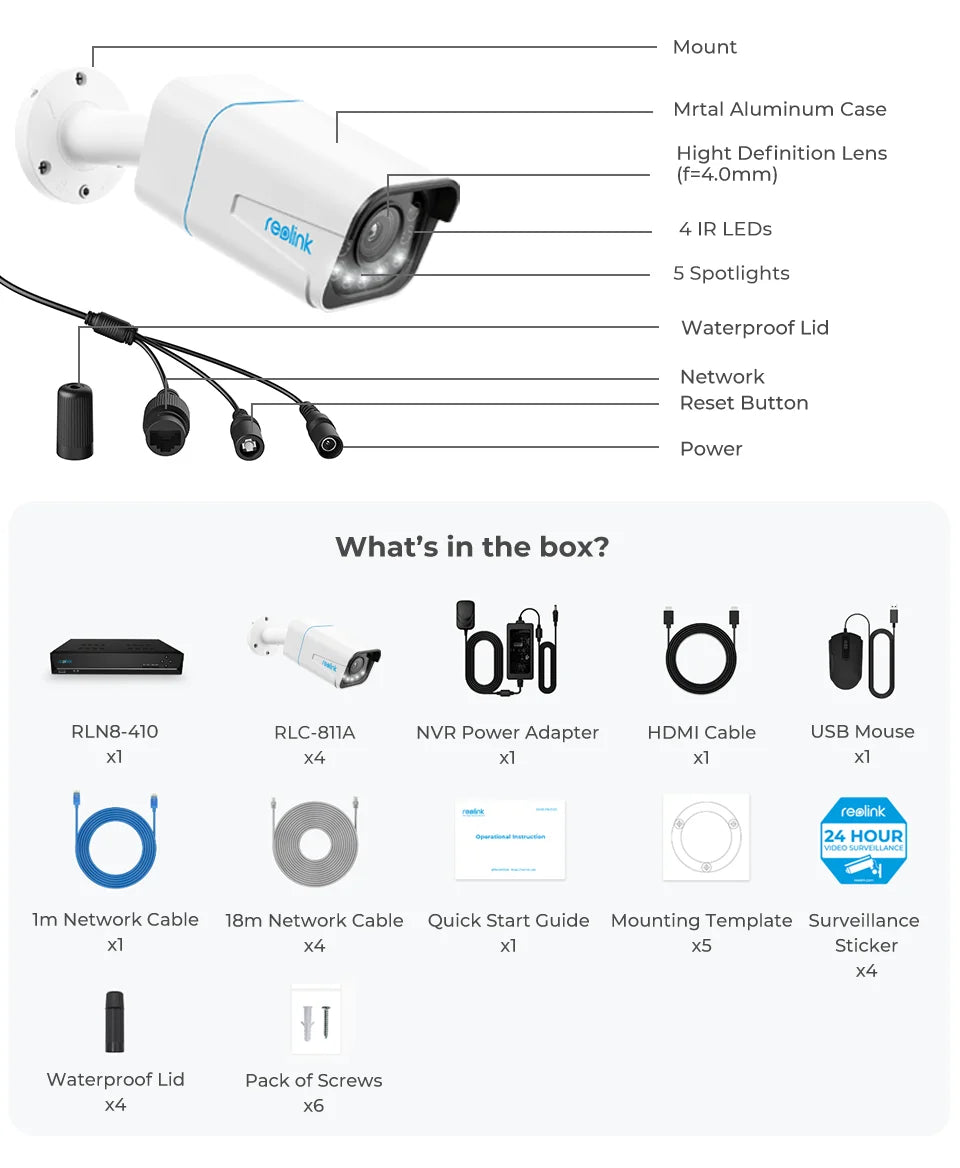 • 24/7 Recording: The included NVR never sleeps, providing constant monitoring and recording of all camera feeds.