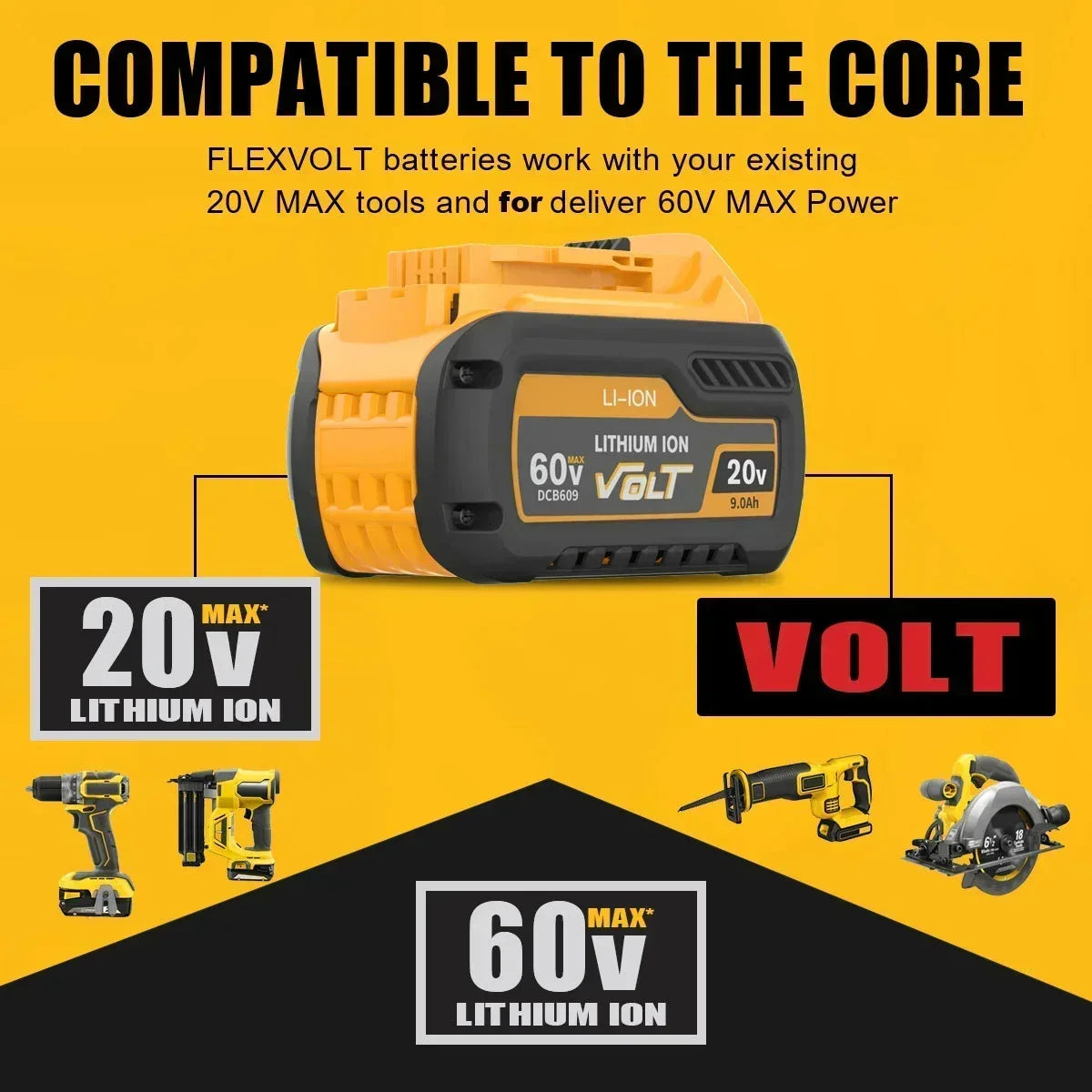 DeWalt 20V 60V Max LiIon Replacement Battery For Tools delivers extended run times with 9000mAh, powering DCB547-XJ, DCB200, and DCB201 with fast charging and low self-discharge. This durable Li-ion battery boosts efficiency on every job, reduces downtime, and keeps your DeWalt tools ready for demanding work.