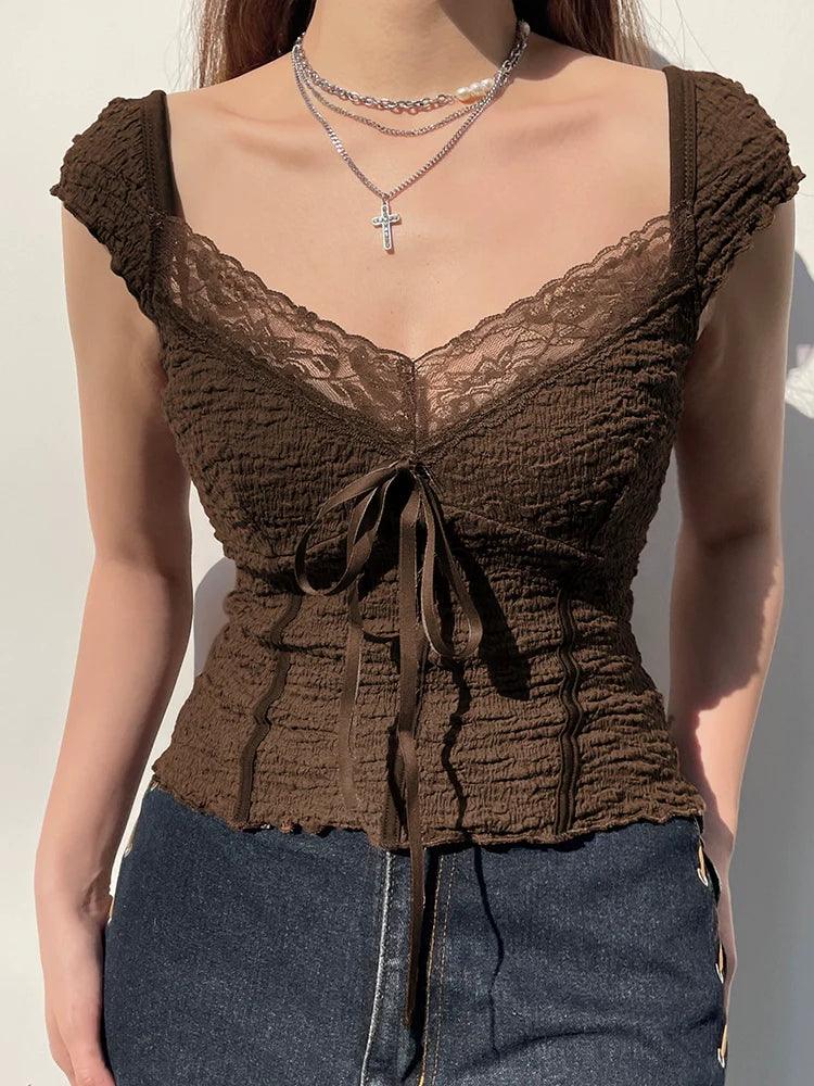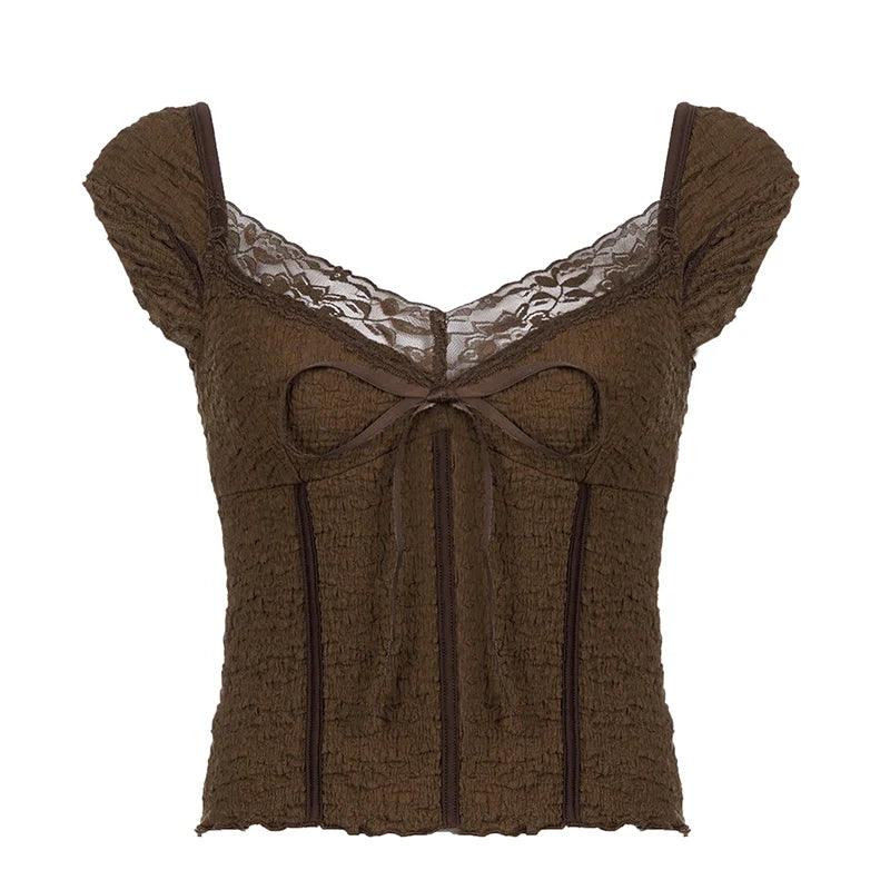 Retro Fishbone Style Short-Sleeve Tee for Summer Chic Looks